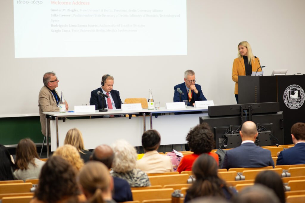 The conference kicked off with the welcome addresses by Günter M. Ziegler (President of Freie Universität Berlin), Silke Launert (State Secretary of the Federal Ministry of Research, Technology and Space), his excellence Rodrigo de Lima Baena Soares (Ambassador of Brazil in Germany), and Sérgio Costa (Mecila’s Spokesperson), setting the tone by locating the conference at the intersection of academic collaboration and global inequalities. The first roundtable, “Overcoming North–South Academic Asymmetries: Diagnosis and Responses”, gathered spokespersons and (former) directors of the Merian Centres in Accra (Hans-Peter Hahn), Delhi (Martin Fuchs), Guadalajara (Olaf Kaltmeier), Tunis (Rachid Ouaissa), and São Paulo (Susanne Klengel). Moderated by Laila Abu-Er-Rub (MIASA), the discussion highlighted the importance of sustainable partnerships, academic freedom, and knowledge diplomacy in a context marked by geopolitical uncertainty, nationalism, and shrinking spaces for critical scholarship. Rather than treating asymmetries as merely structural constraints, the panel emphasized the need for innovative institutional formats that actively reshape how research agendas are defined and pursued.