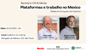 Neste seminário, os pesquisadores Carlos Alba (El Colegio de México/Mecila) e Álvaro Comin (CCI/Cebrap) discutem como o avanço dos aplicativos de transporte e entrega — como Uber, 99 e outros — vem transformando o mundo do trabalho, as relações econômicas e o cotidiano das pessoas.